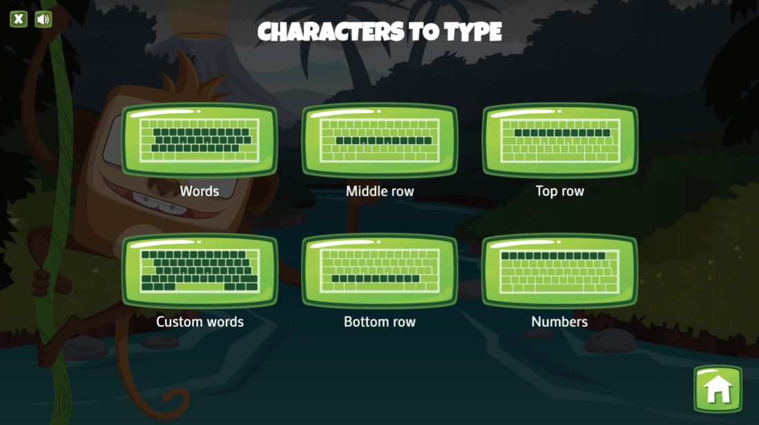 Students can choose from six game modes to practice typing either sequences of characters in their choice of one of four rows on the keyboard or single words using multiple rows of keys. This lets them perfect their finger positioning for each different row, then work their way up to using all rows together to type out whole words.