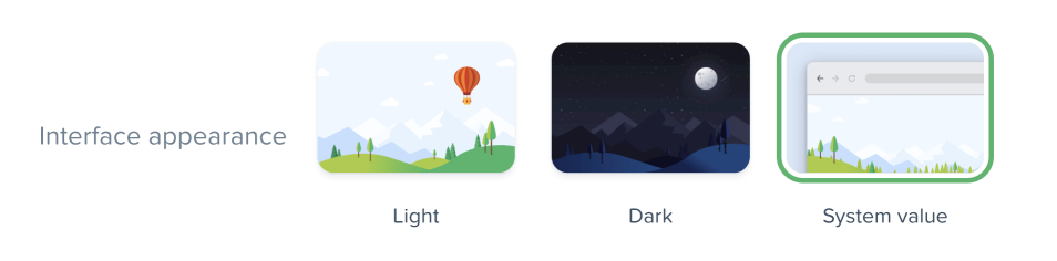 - Dark—This interface appearance uses darker colors and is recommended for work environments with poor lighting.