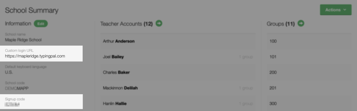 - The school’s custom URL for access to Typing Pal.