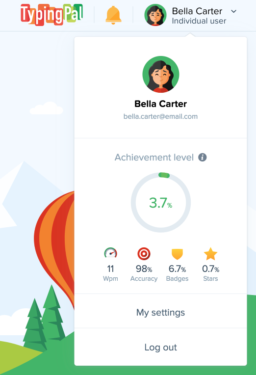 You will be able to access the brand new achievements panel at any time from your avatar, allowing you to quickly check how far you have come. It will show a new achievement level, badges collected and stars won, as well as your average speed and accuracy.