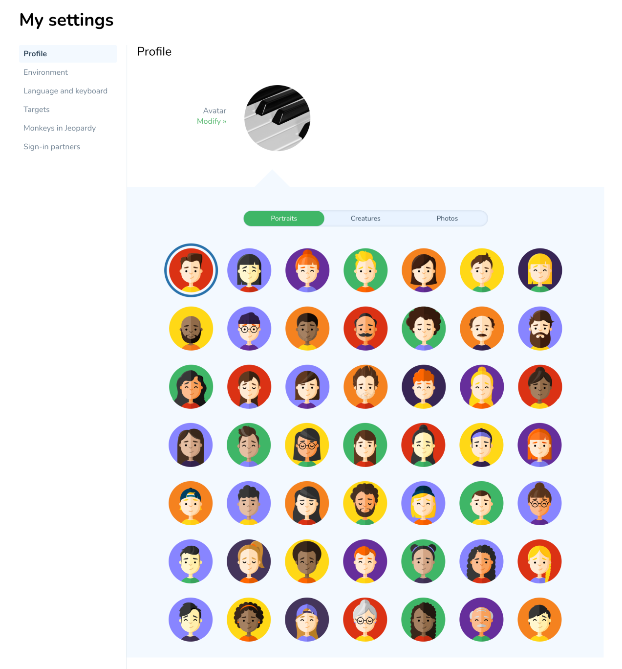 3. Click their avatar, and then choose a new avatar from among the 30 characters and 30 neutral pictures.