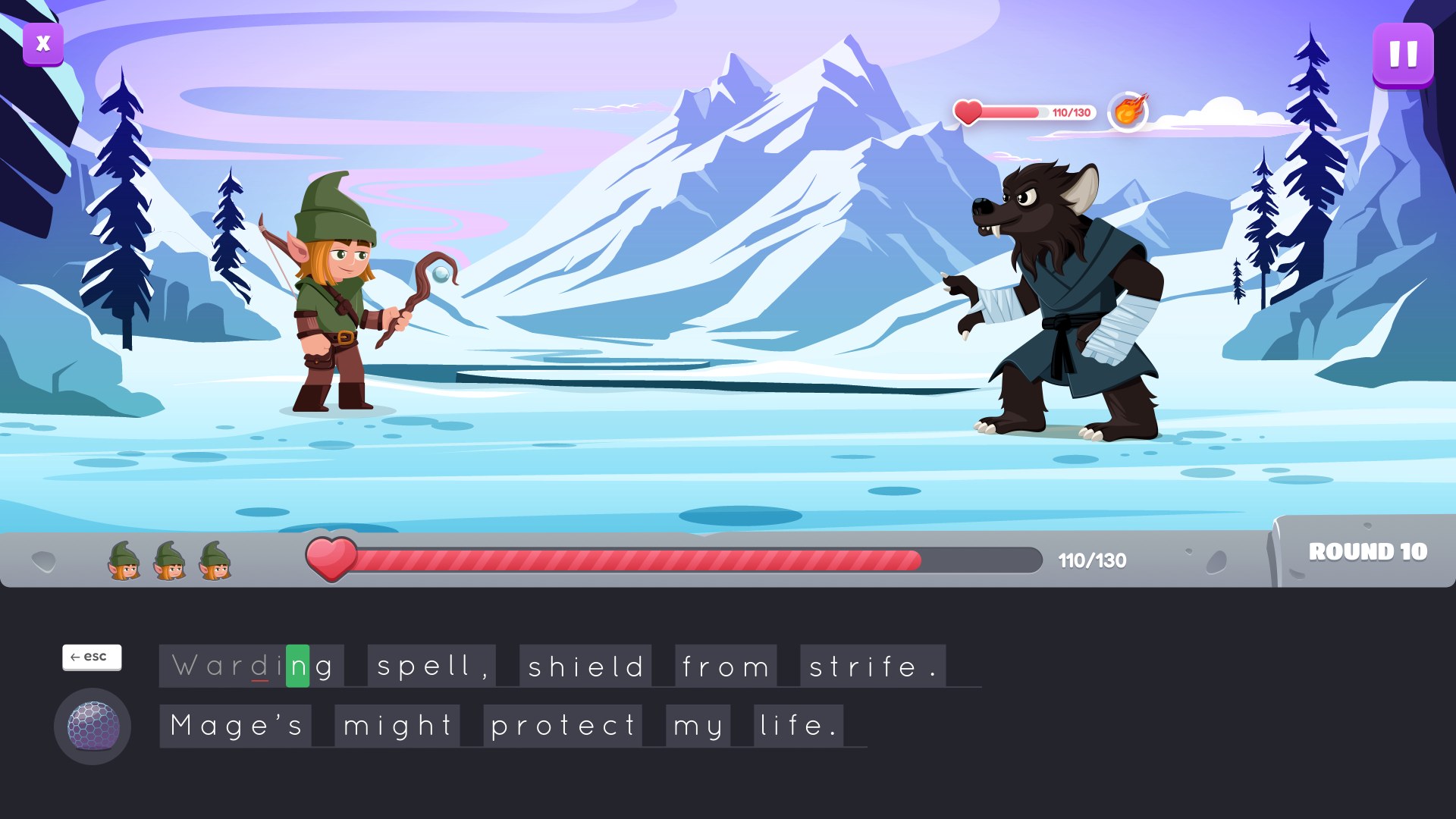With the launch of Magical Duel, Typing Pal’s educational games now incorporate three skills developed progressively through touch typing training: hitting single characters in Cosmik Ball, entering character sequences or words in Monkeys in Jeopardy, and typing word sequences and phrases in Magical Duel.