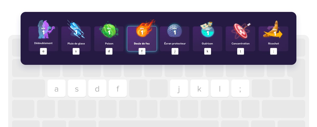 Duel surnaturel a été développé avec une mécanique de jeu et un visuel pour plaire au plus grand nombre, tout en correspondant au programme d’apprentissage de la frappe au clavier et en respectant les impératifs d’une utilisation en milieu scolaire.