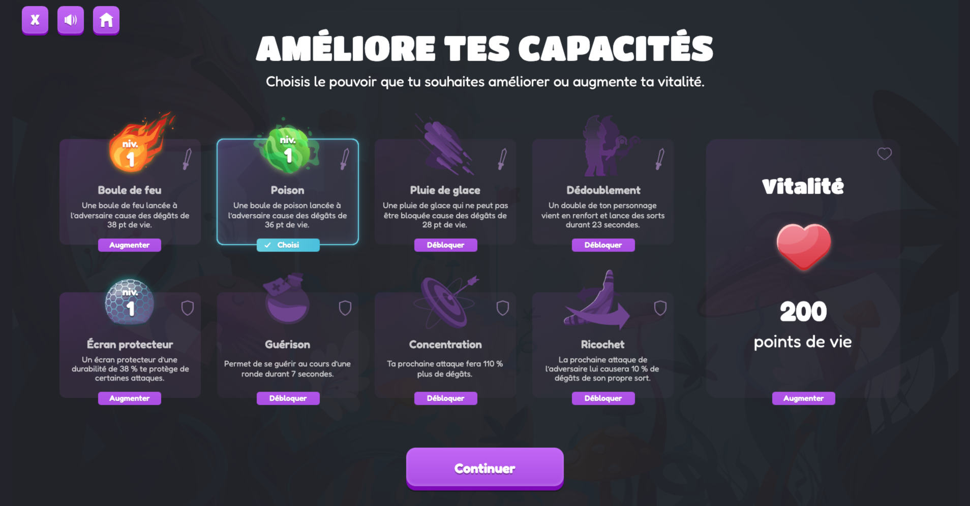 Le jeu Duel surnaturel propose un univers fantastique à vos élèves. Leur personnage doit libérer des sujets du royaume sous l’emprise d’un maléfice en les affrontant dans un duel surnaturel.