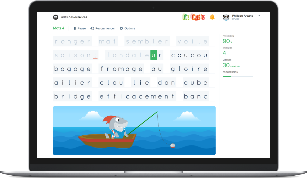 Tap’Touche est une méthode en ligne simple et efficace pour aider vos enfants à développer une solide technique de frappe au clavier. Intégrez notre cours de dactylographie à votre programme d’enseignement à la maison et permettez-leur d’apprendre ou de perfectionner rapidement leur doigté tout en s’amusant.