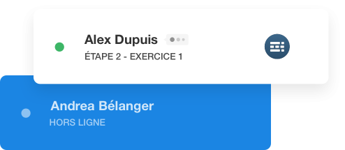 Observez les activités de votre classe en temps réel avec un tableau de bord dynamique. Vos élèves sont-ils connectés? Font-ils tous le bon exercice? Suivez-les pas à pas dans leur progression.